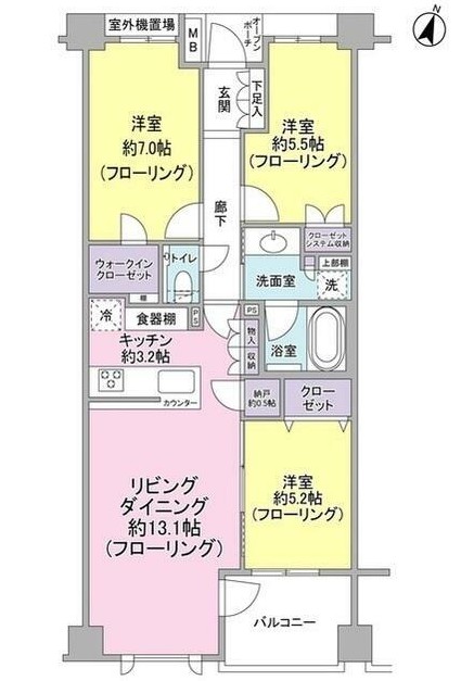| 間取り詳細 | LDK:16.3畳 洋室:7畳、5.5畳、5.2畳 |