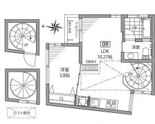 | 設備・条件 | デザイナーズ/最上階/敷地内ごみ置場/角住戸/2面採光/オートロック/防犯カメラ/ロフト/システムキッチン/3口以上コンロ/グリル付/追焚機能浴室/浴室乾燥機/温水洗浄便座/洗面所独立/洗面化粧台/24時間換気システム/バルコニー/無垢材使用/室内らせん階段/室内洗濯置/シューズボックス/ネット使用料不要/ |