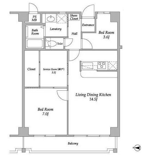 | 間取り詳細 | LDK:14.5畳 洋室:7畳、3.6畳 S:3.5畳 |