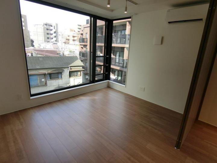 南東向き、角部屋、二面採光の2DKはスポットライト照明や一部コンクリート打ち放しがお洒落なデザイナーズ。グリル付3口システムキッチンや追い炊き、浴室乾燥機、独立洗面台、温水洗浄便座等の設備も充実。