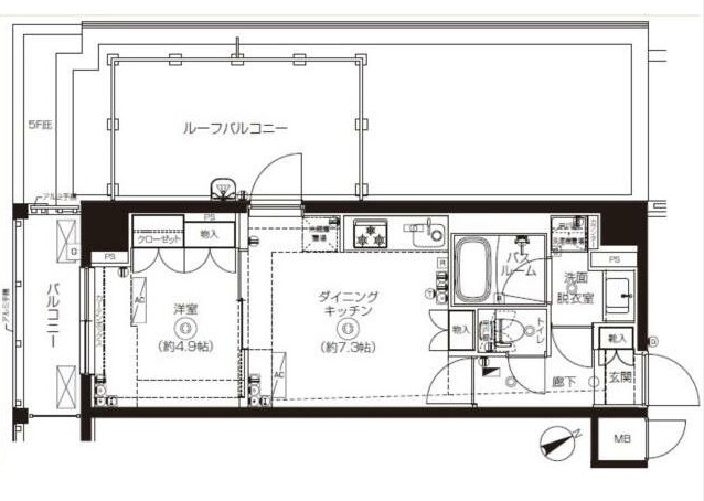 | 間取り詳細 | DK:7.3畳 洋室:4.9畳 |
