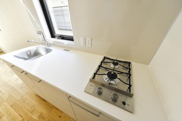 南西向き、二面採光の風通しに優れた室内。温かみのある床がお洒落なデザイナーズアパートメント。インターネット利用料が無料、2口ガスのシステムキッチンや追い炊き、浴室乾燥機、独立洗面台等の設備が充実。