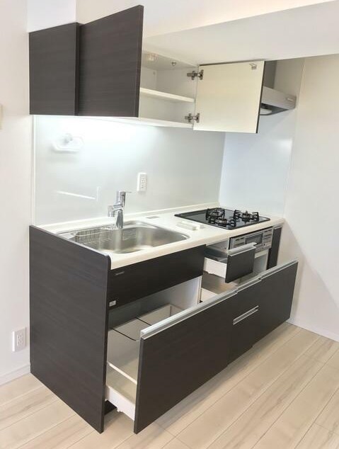 角部屋、二面採光の風通しに優れた1LDKはウォークインクローゼットがあり収納豊富。インターネットが無料で楽しめる室内はリビングの床暖房やグリル付3口システムキッチン、追い炊き等の設備が充実してます。