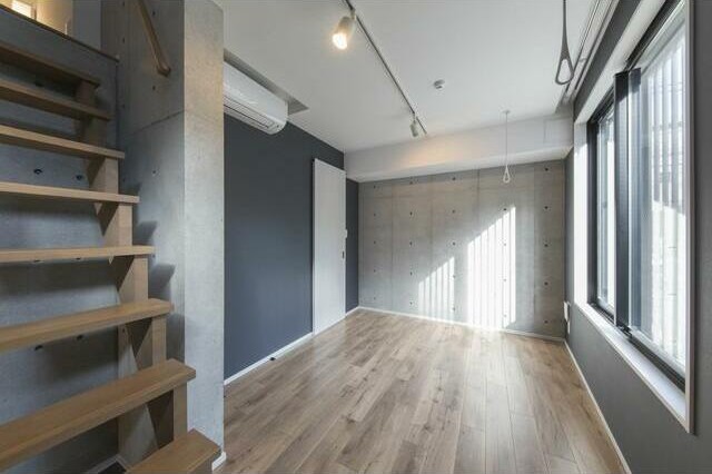 | 設備・条件 | デザイナーズ/外壁コンクリート/内装コンクリート/宅配ボックス/バイク置場/南向き/オートロック/防犯カメラ/ロフト/システムキッチン/ガスレンジ付/2口コンロ/バストイレ別/浴室乾燥機/温水洗浄便座/洗面所独立/24時間換気システム/フローリング/全居室フローリング/室内洗濯置/クロゼット/CATV/ネット使用料不要/TVインターホン/ペット相談/保証人不要/エアコン |