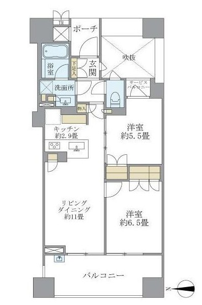 | 間取り詳細 | LDK:13.9畳 洋室:6.5畳、5.5畳 |