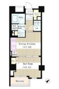 南東向きの1DKはシューズインクローゼットがあり収納豊富。浄水器付きのシステムキッチンや追い炊きフルオートバス、浴室乾燥機、独立洗面台、温水洗浄便座等の室内設備が充実した分譲賃貸マンションです。