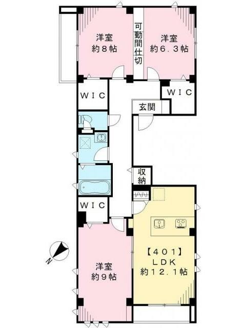 | 間取り詳細 | LDK:12.1畳 洋室:9畳、8畳、6.3畳 |