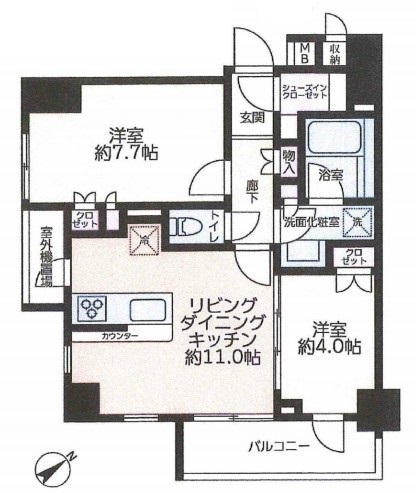 | 間取り詳細 | LDK:11畳 洋室:7.7畳、4畳 |