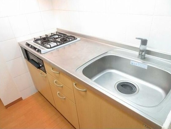 両部屋南向きの1LDKはグリル付きの2口システムキッチンや追い炊き、浴室乾燥機付きのお風呂、シャンプードレッサー、温水洗浄便座等の設備が充実。宅配ボックスやゴミ置場、駐輪場等の共用設備も充実の分譲賃貸マンション
