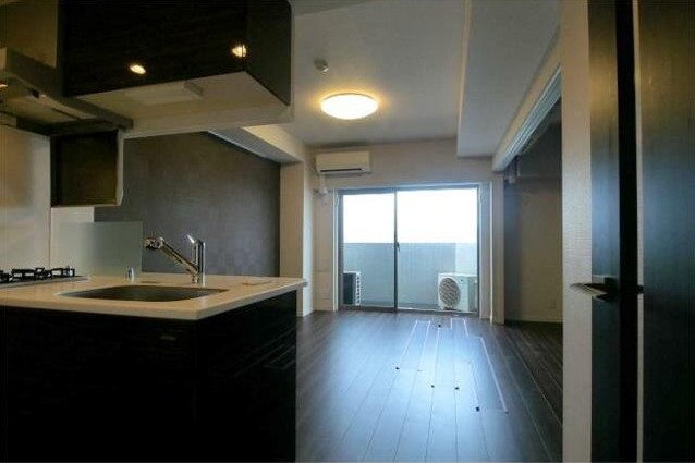 最上階、西向きの1LDKはペットの飼育が可能。2口ガスのカウンターキッチンや追い炊き、浴室乾燥機付きのお風呂、独立洗面台、温水洗浄便座、エアコン全室等の室内設備や宅配ボックス等の共用部も充実の分譲賃貸