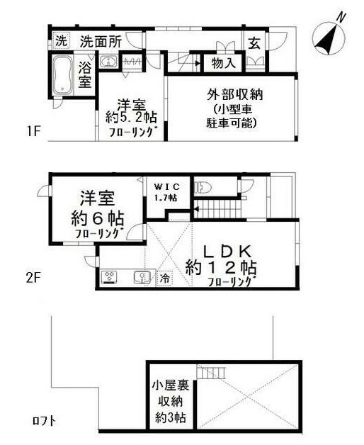 | 間取り詳細 | LDK:12畳 洋室:6畳、5.2畳 |