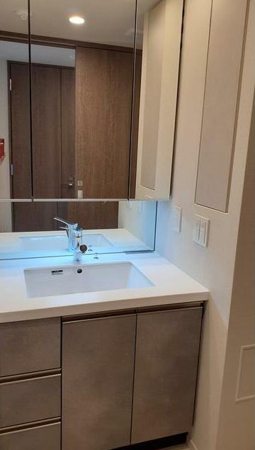 | 設備・条件 | 分譲賃貸/最上階/エレベーター/24時間ゴミ出し可/宅配ボックス/敷地内ごみ置き場/築2年以内/駐輪場/南向き/オートロック/ダブルロックキー/ディンプルキー/防犯カメラ/システムキッチン/対面式キッチン/ガスレンジ付/2口コンロ/グリル付/都市ガス/バストイレ別/オートバス/追焚機能浴室/浴室乾燥機/ミストサウナ/温水洗浄便座/洗面所独立/三面鏡付洗面化粧台/シャワー付洗面台/24時間換気システム/床暖房/バルコニー/南面バルコニー/フローリング/全居室フローリング/室内洗濯置/クロゼット/ウォークインクロゼット/シューズボックス/光ファイバー/TVインターホン/即入居可/保証人不要/エアコン/通風良好/陽当り良好 |