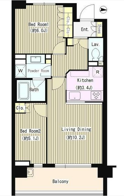 | 間取り詳細 | LDK:13.6畳 洋室:6畳、5.1畳 |