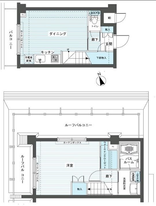 最上階、角部屋、L字型のルーフバルコニーが広がるメゾネットの室内はグリル付きのシステムキッチンや追炊き、浴室乾燥機、三面鏡付洗髪洗面化粧台、温水洗浄便座、ウォークインクローゼット等の設備が充実してます