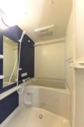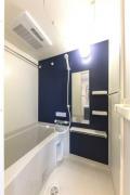 南向き、一部コンクリート打ち放しの壁をスポットライト照明が照らすお洒落な室内はインターネット利用料が無料。浴室乾燥機や独立洗面台、システムキッチン、温水洗浄便座、テレビモニターフォン等の設備が充実