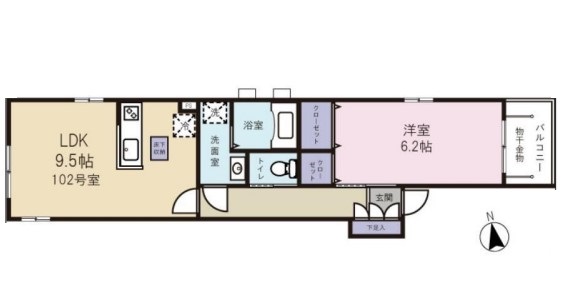 | 間取り詳細 | LDK:9.5畳 洋室:6.2畳 |
