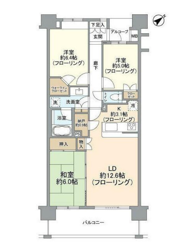 | 間取り詳細 | LDK:15.7畳 洋室:6.4畳、5畳 和室:6畳 |