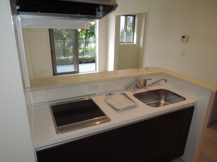 南西向き、専用庭が広がる二面採光の角部屋はIHのカウンターキッチンや追い炊き、浴室乾燥機、三面鏡付独立洗面化粧台、温水洗浄便座、エアコン2基等の設備に優れ、ゴミ置場や宅配ボックス等の共用設備も充実。