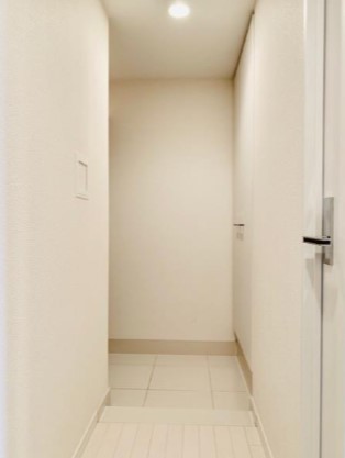最上階、角部屋、南東向き、一部コンクリート打ち放しの壁をスポットライト照明が照らすお洒落な室内。システムキッチンや独立洗面台、浴室乾燥機、温水洗浄便座等の水回りの設備も充実したデザイナーズマンション