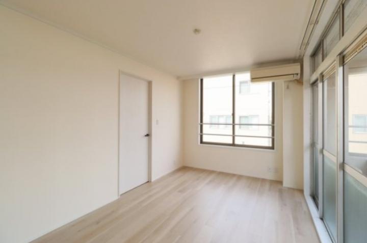 南東向き、角部屋、二面採光のフルリノベーションされた1LDKはグリル付きの3口システムキッチンやシャンプードレッサー、温水洗浄便座、エアコン2基等の設備に優れ、宅配ボックスや駐輪場等の共用設備も充実