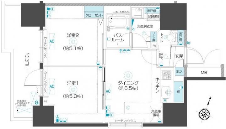 | 間取り詳細 | DK:6.5畳 洋室:5.1畳、5畳 |