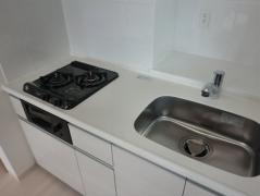最上階、角部屋、二面採光のペットの飼育が可能な2DKはグリル付きのシステムキッチンや追い炊き、浴室乾燥機、洗髪洗面化粧台、温水洗浄便座、エアコン等の設備に優れ、宅配ボックスやバイク置場等の共用部も充実