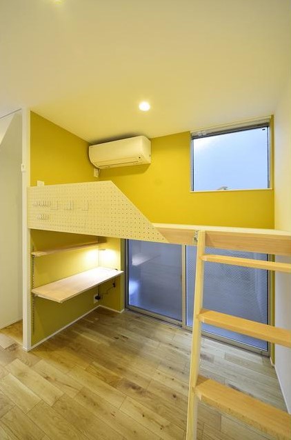 上部がベッドスペース、下部がデスクになっている空間をうまく利用したデザイナーズの室内はインターネット利用料が無料。2口ガスのシステムキッチンや独立洗面台、浴室乾燥機、温水洗浄便座、エアコン等の充実設備