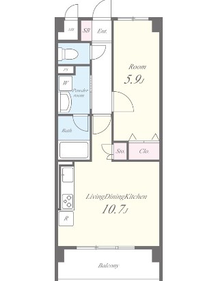 | 間取り詳細 | LDK:10.7畳 洋室:5.9畳 |