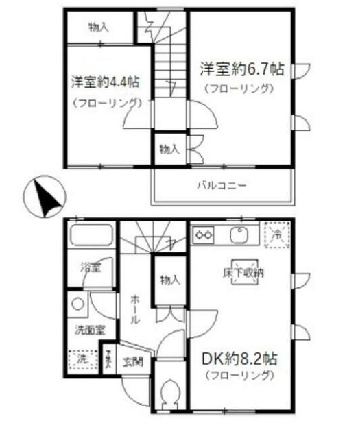 | 間取り詳細 | DK:8.2畳 洋室:6.7畳、4.4畳 |
