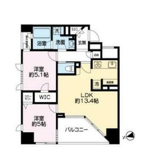 | 間取り詳細 | LDK:13.4畳 洋室:5.1畳、5畳 |