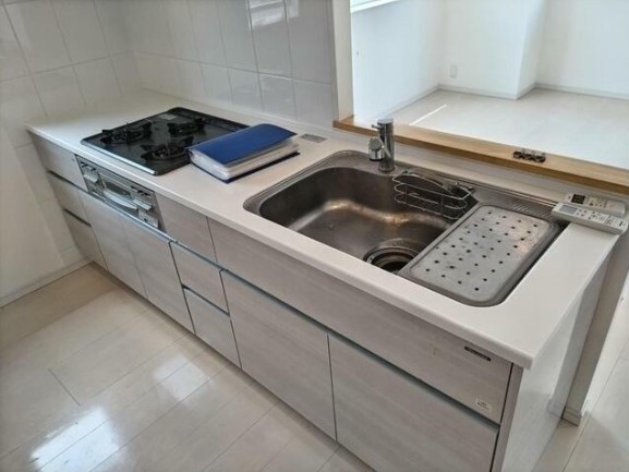 二面採光の角部屋はグリル付きの3口ガスカウンターキッチンや追い炊き、浴室乾燥機付きのお風呂、三面鏡付洗髪洗面化粧台、温水洗浄便座、エアコン等の設備に優れ、宅配ボックスやゴミ置場等の共用設備も充実