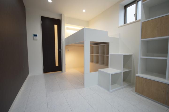 インターネットが無料で利用可能な最上階の角部屋は上部がベッドスペース、下部が収納になっており空間を有効的に利用可能。浴室乾燥機や2口ガスシステムキッチン、独立洗面台、温水洗浄便座等の設備も充実してます