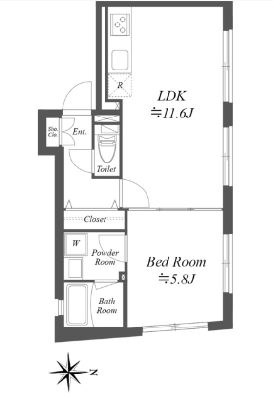 | 間取り詳細 | LDK:11.6畳 洋室:5.8畳 |