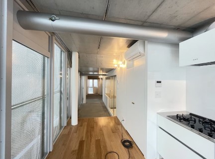 玄関土間内に自転車を駐輪できるデザイナーズマンション。複数面採光の角部屋は3口ガスのシステムキッチンや追炊き、浴室乾燥機、独立洗面台、温水洗浄便座等の設備に優れ、インターネットが無料で利用可能です。