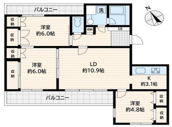 | 間取り詳細 | LDK:14畳 洋室:6畳、6畳、4.8畳 |