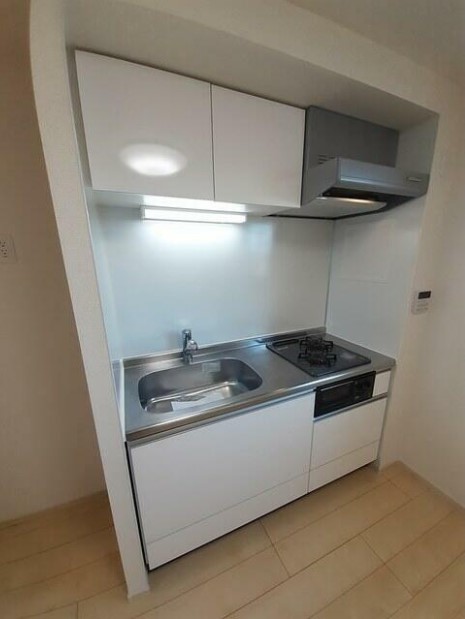 最上階、角部屋、複数面採光の1LDKはグリルや浄水器付きの2口ガスシステムキッチンや追い炊き、浴室乾燥機、温水洗浄便座、独立洗面台等の設備に優れ、モニター付オートロックや防犯カメラ等の防犯設備も充実