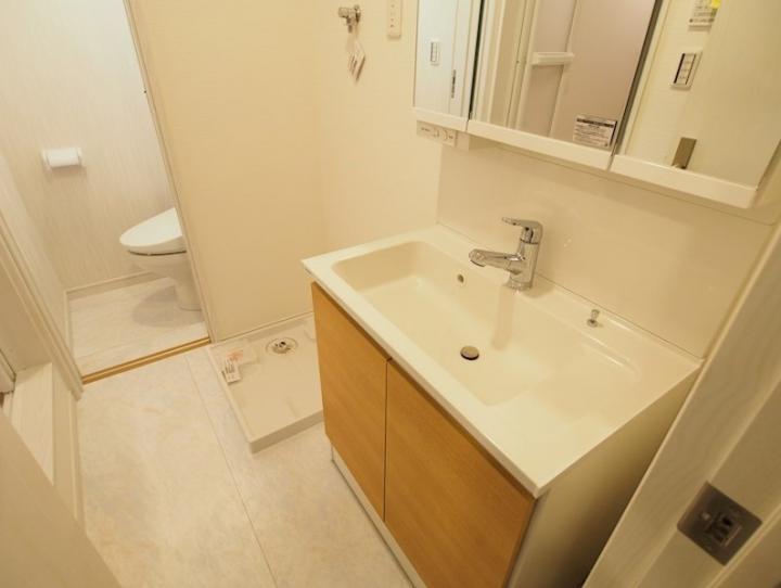 南西向き、角部屋、二面採光の風通しに優れた1LDKはグリル付きのカウンターキッチンや追い炊き、浴室乾燥機付きのお風呂、三面鏡付洗髪洗面化粧台、温水洗浄便座、テレビモニターフォン等の室内設備が充実。