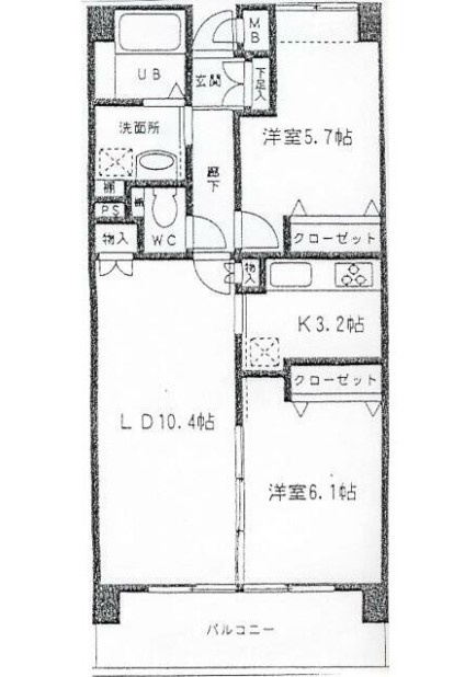 | 間取り詳細 | LDK:13.6畳 洋室:6.1畳、5.7畳 |